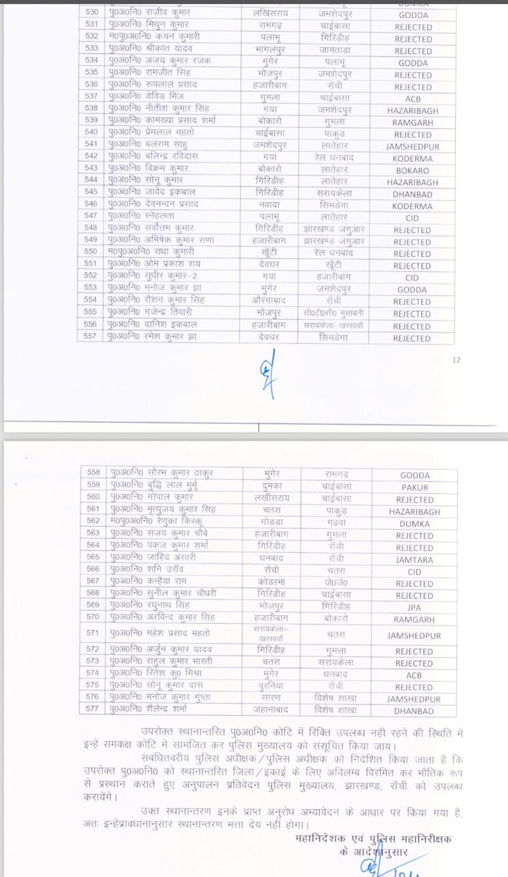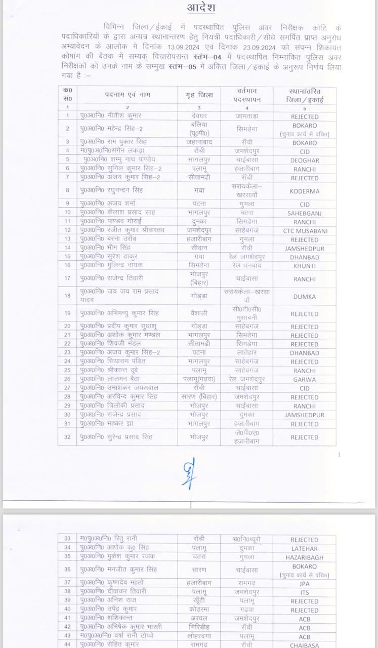 Jharkhand विधानसभा चुनाव की घोषणा से पहले राज्य में तबादलों का दौर जारी है। झारखंड में बड़े पैमाने पर पुलिस अवर निरीक्षक कोटि के पदाधिकारियों का तबादला किया गया है। महानिदेश एवं पुलिस महानिरीक्षक के आदेश पर पुलिस उप महानिरीक्षक कार्मिक ट्रांसफर का आदेश जारी कर दिया है।